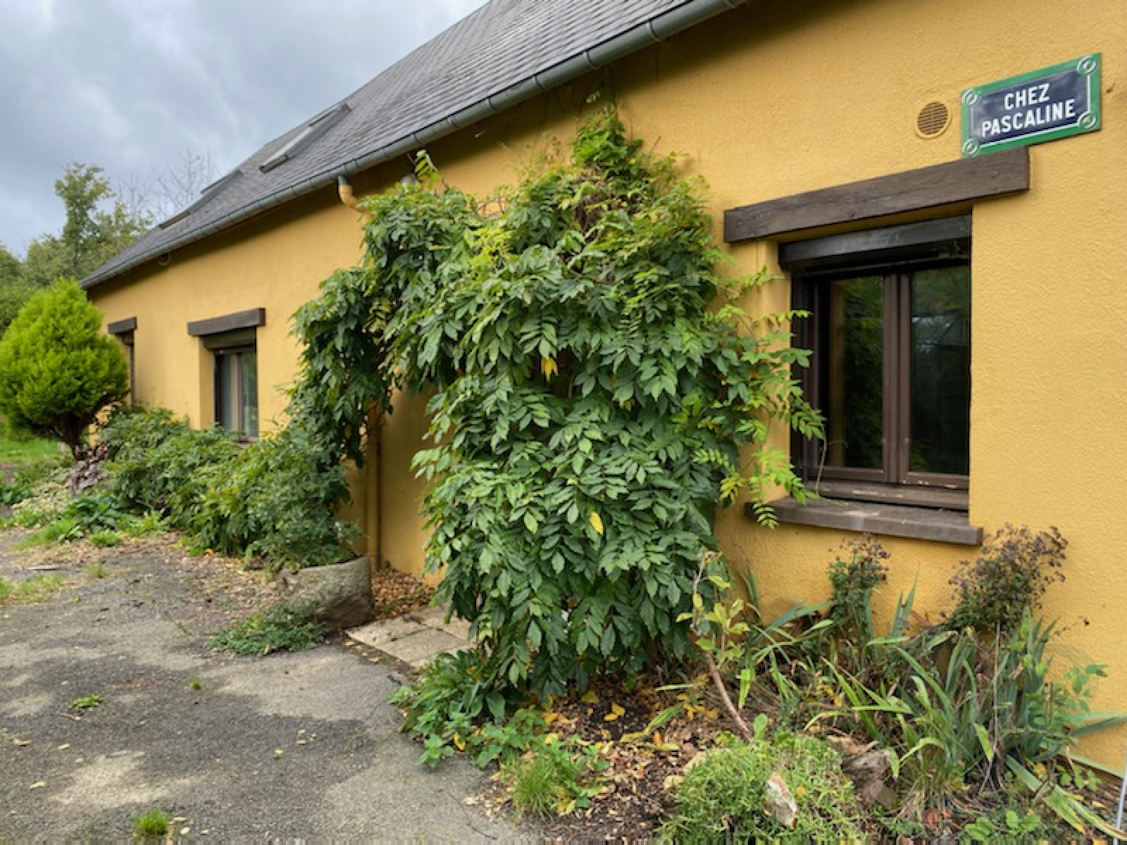 - au rez-de-chaussée : une cuisine séparée, un séjour/salon avec un insert à bois, une chambre et une salle d'eau.