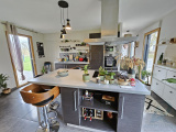- une cuisine ouverte sur un beau séjour/salon avec un poêle à bois, trois chambres dont une suite parentale, une salle de bain, un wc et une arrière cuisine.