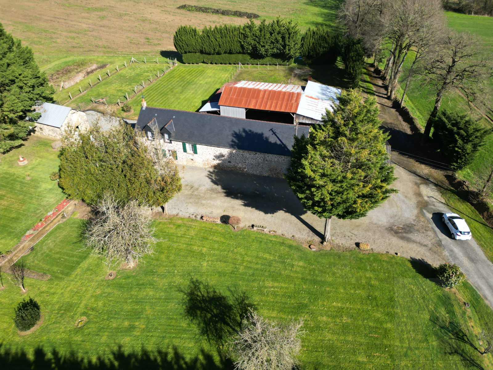 De plus, la longère possède de nombreux bâtiments et un très grand terrain !